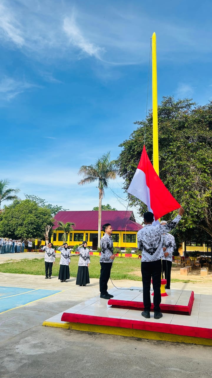 Pada upacara tersebut, para guru bertindak sebagai petugas mulai dari pemimpin upacara, pembaca naskah, hingga pengibar bendera.