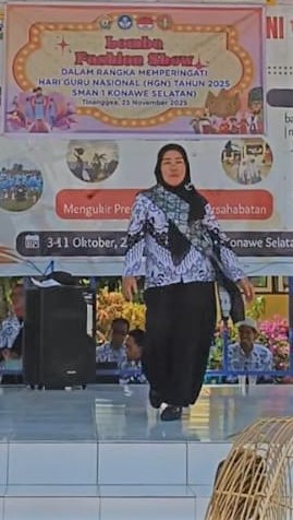 Dalam rangka memperingati Hari Guru Nasional, para guru SMAN 1 Konawe Selatan (Konsel) menggelar kegiatan unik dan meriah berupa fashion show antar guru.